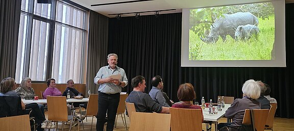 In seiner Power Point Präsentation vermittelte er einen kurzen, aber äußerst naturnahen Einblick in die faszinierende Tier- und Pflanzenwelt und die vielfältigen Landschaften Ostafrikas. Besonders schön waren die großartigen Aufnahmen von Berggorillas und Schimpansen, die in den dichten Regenwäldern leben und aus nächster Nähe fotografiert werden konnten.